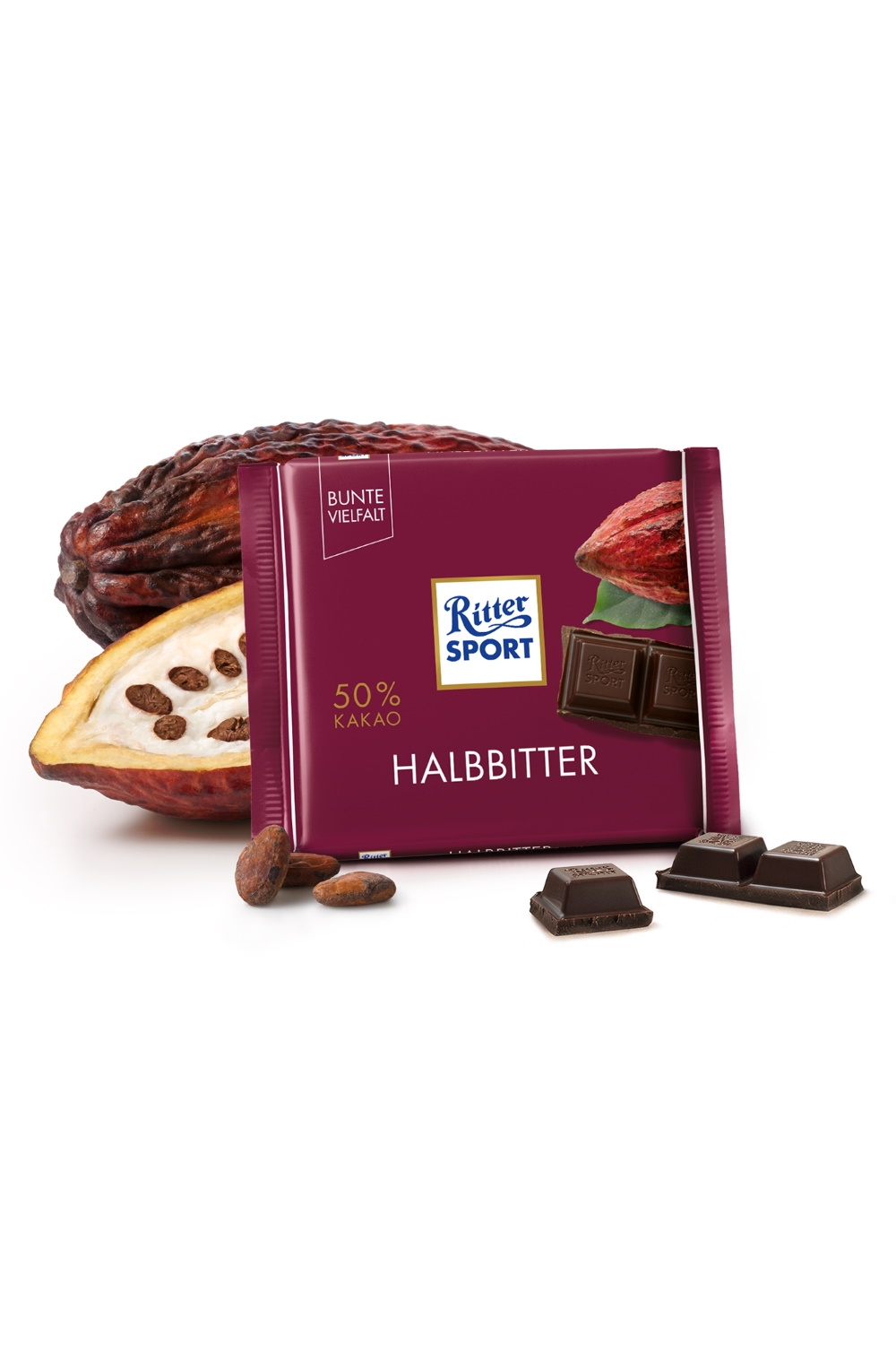 Halbbitter-Schokolade. Kakao: 50 % mindestens.