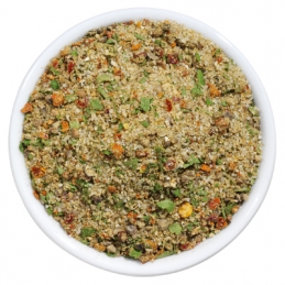 Table salt, spices (pepper, coriander, onion, paprika, chillies, marjoram, parsley, garlic), sugar, nat. Aroma.