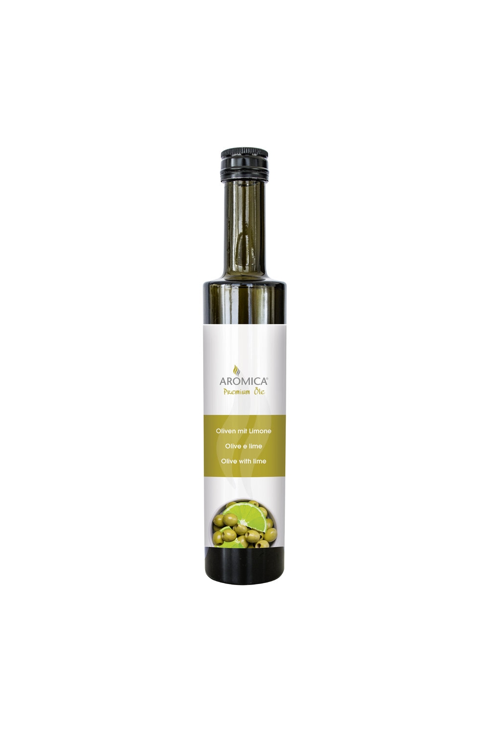 AROMICA® Premium Olive Oil with Lime combines the best extra virgin olive oil, obtained using only a mechanical process, with natural lime extracts to form a deliciously aromatic oil mix. A cold-pressed Italian speciality that will add a little bit of Mediterranean magic and natural freshness to salads, fish dishes, seafood, fresh or boiled vegetables, minestrone soup, bruschetta and pizza.