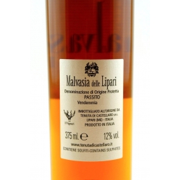wine from dried grapes with complex hints of apricot, dried rose and white fig. The taste is a perfect balance between sweetness, acidity and minerality, which makes it pleasant and persistent. Born from the marriage between the Mediterranean sun and the sea of the Aeolian Islands, in a vineyard perched over the sea. Originating from the heat, resulting in a concentration of fragrances