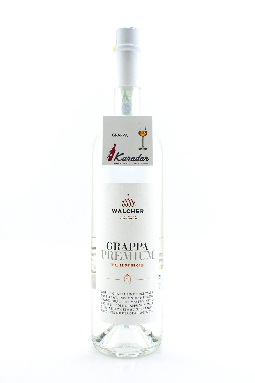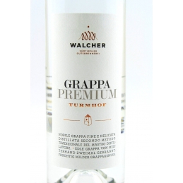 A cuveè of rich red grape varieties forms the basis for the Grappa Turmhof Premium. Fragrant, fine and mild grappa.