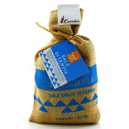 Pure coarse sea salt. The so-called Sale di cervia is a natural product that contains all trace elements, such as iodine, zinc, copper, manganese, iron, magnesium and potassium. This salt contains no additives, is washed with pure highly concentrated sea water and centrifuged. Contains a natural moisture of 2%, this is typical of unrefined salt. Is also known as "sweet salt", because of the limited presence of bitter salts such as, sulfates of magnesium, calcium, potassium and magnesium chloride, it acts much milder in taste and not so salty.