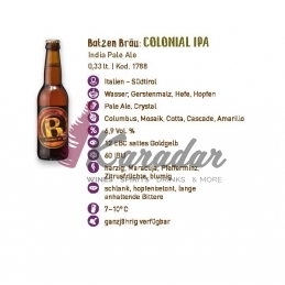 IPA è nata in Inghilterra nel XIX secolo e veniva prodotta per le colonie indiane. Un impiego marcato di luppolo e alcol stabilizzava la birra e la rendeva idonea ad affrontare il lungo viaggio. Aroma: agrumato, floreale. Sapore: maltato, fruttato, sentori di luppolo.