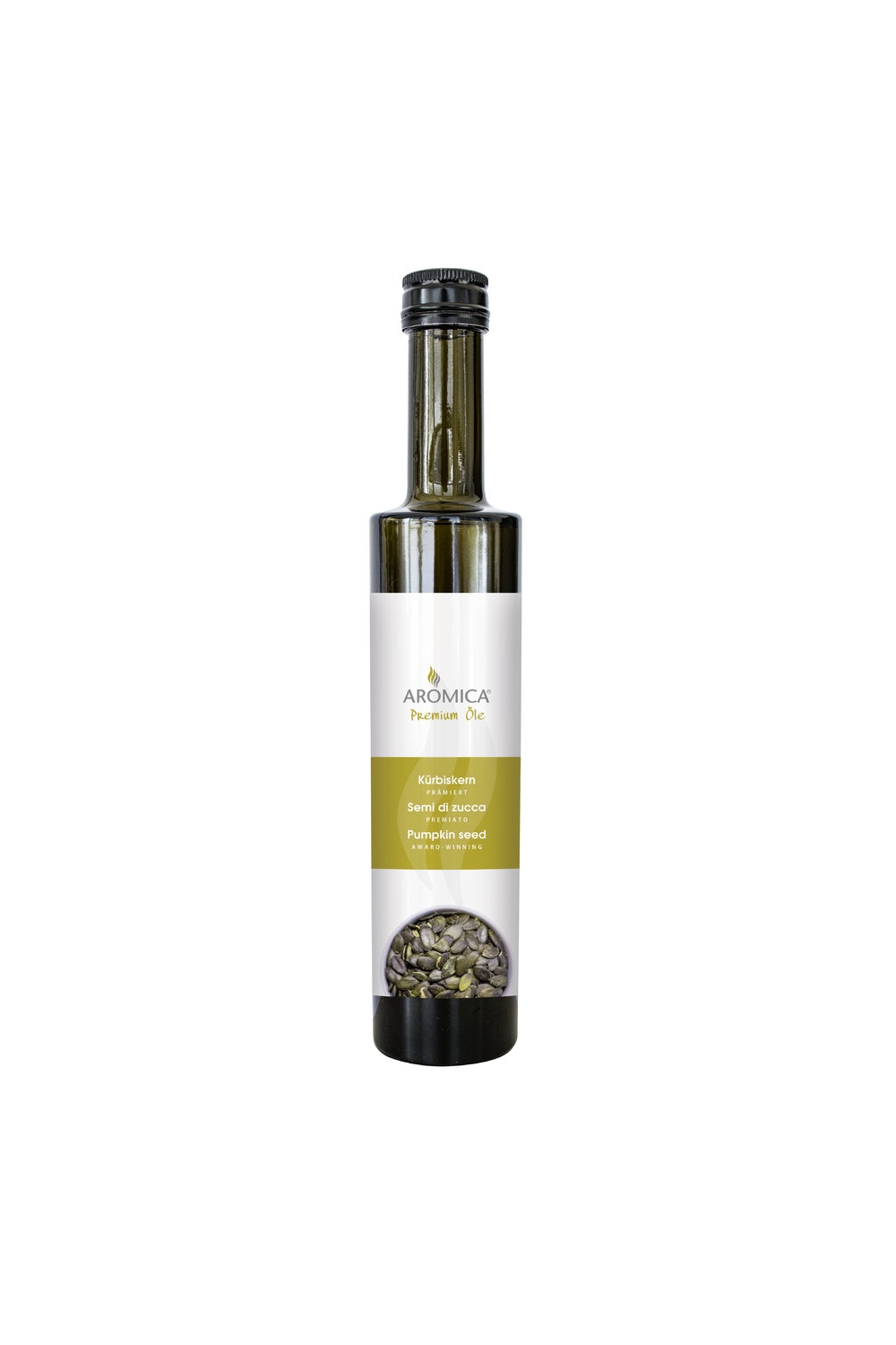 L’olio Premium ai Semi di Zucca AROMICA® è un prodotto premiato, ottenuto da semi sgusciati di prima qualità, ricavati esclusivamente da zucche coltivate da esperti contadini stiriani locali. Dalla lavorazione tradizionale mediante una spremitura particolarmente delicata nasce poi questa specialità austriaca, in grado di entusiasmare anche i palati più esigenti grazie al suo sapore caratteristico e al suo inconfondibile aroma pieno.