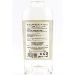 L’Acqua di Cedro, la cui ricetta prevede un blend tra infuso e distillato di Cedri di Santa Maria del Cedro, il tutto sempre lavorato da fresco, è in liquore fresco e beverino, con sentori tipicamente citrici e mediterranei, molto interessante in miscelazione, godibilissimo liscio, consumato a temperatura da vino bianco, come aperitivo o come dopo pasto, volendo allungato con soda o con una tonica classica.