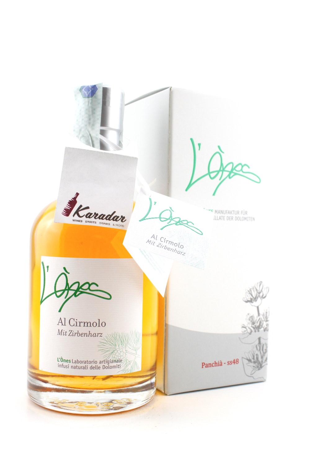 Infuso naturale a base di grappa Trentina, ottenuto mediante macerazione di pigne di Pino Cimbro (Cirmolo) con estrazione naturale delle resine.