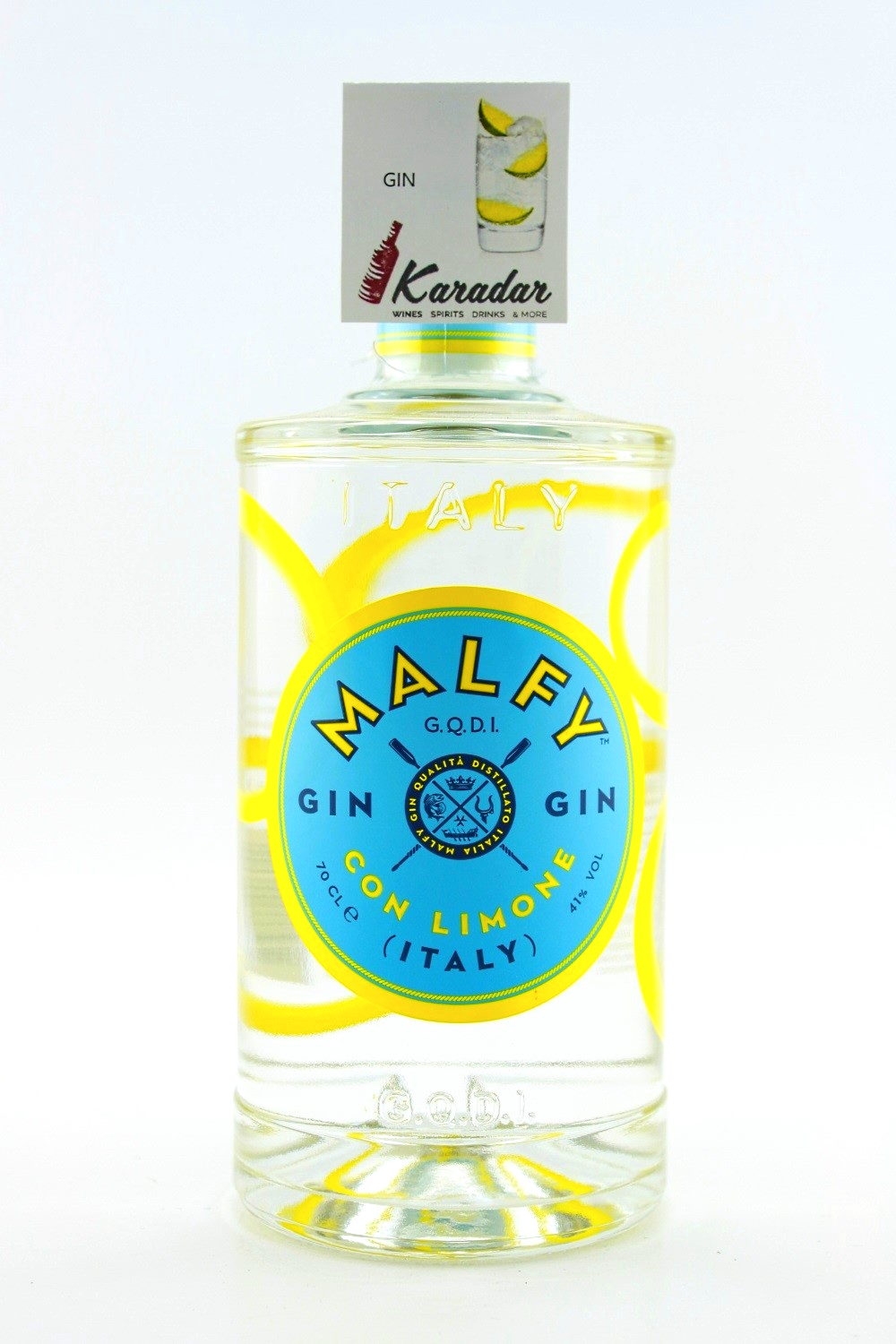 Malfy Gin è un prodotto italiano al 100%; anche la bottiglia è decorata con una tecnica di lavorazione del vetro tipica italiana, mentre il tappo è di legno di quercia italiana. Sull'etichetta troviamo uno stemma che vuole ricordare le gare di canottaggio che ogni anno coinvolgevano i quattro antichi regni d'Italia. I due colori blu e giallo rappresentano il mare e i limoni che crescono nelle zone costiere. La sigla G.Q.D.I. significa: "Gin di Qualità Distillato in Italia". Malfy Gin viene prodotto utilizzando limoni provenienti da Amalfi e dalla Sicilia nella distilleria Torino Distillati di Moncalieri, nata nel 1906 e gestita dalla famiglia Vergnano. I due distiller di Malfy Gin sono Beppe Ronco e Denis Muni. Il loro gin vanta il record di essere stato il primo gin italiano esportato negli USA. Sul sito internet ufficiale di Malfy Gin si legge che il gin è stato inventato in Italia. In effetti uno dei più antichi proto-gin fu creato nell'anno mille nella costa salernitana da alcuni monaci che facevano un'infusione di ginepro e altre botaniche nell'alcol per creare un liquore dalla funzione medicinale.
