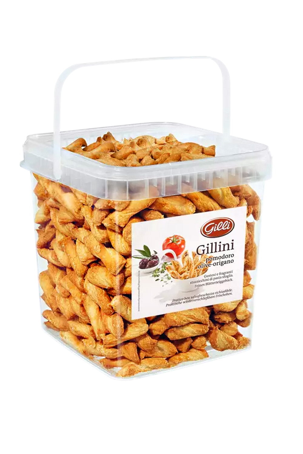 Sapete quegli amici solari che piacciono a tutti? Ecco, i Gillini al pomodoro, olive, e origano sono proprio così: orgogliosamente mediterranei, sfacciatamente di buon gusto e così versatili da essere sempre la compagnia ideale per ogni tipo di aperitivo.