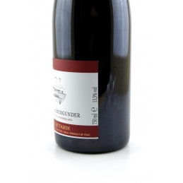 Rosso rubino. Al naso ricorda note di frutti di bosco e ciliegia Amarena. Allo stesso tempo, però, dolcezza fine, spezie e note di legno delicato. Al palato, questo Pinot Nero presenta le caratteristiche tipiche. Rigoglioso, succoso, dal calore fine, molto bilanciato e sfaccettato. Al palato è un vero adulatore con un lungo finale.